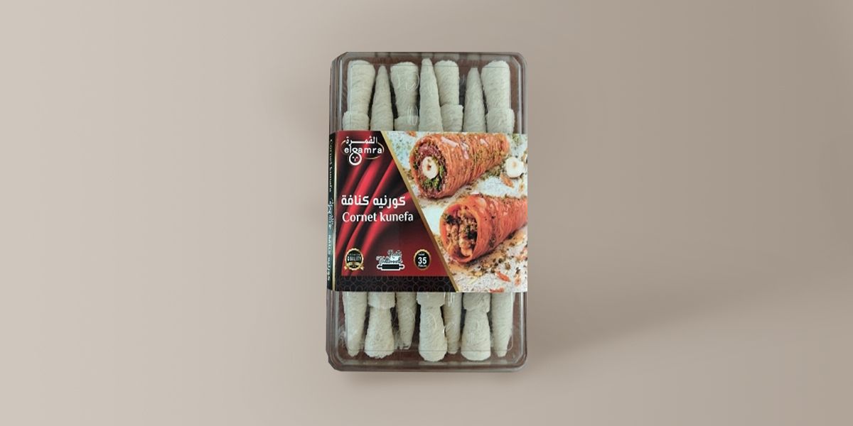 Le Cornet Künefa est une interprétation moderne et raffinée de la célèbre künefa, revisité sous forme de cornet croustillant. Chaque pièce est façonnée à la main à partir de pâte kunefa. Il sert de base à de nombreux desserts sucrés et peut également être utilisée pour des recettes salées